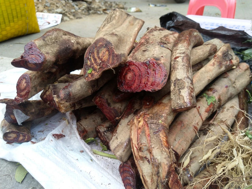 本品为豆科植物密花豆Spatholobus suberectus Dunn的干燥藤茎。。。秋、、冬二季采收,,,除去枝叶,,,,切片,,,,晒干。。