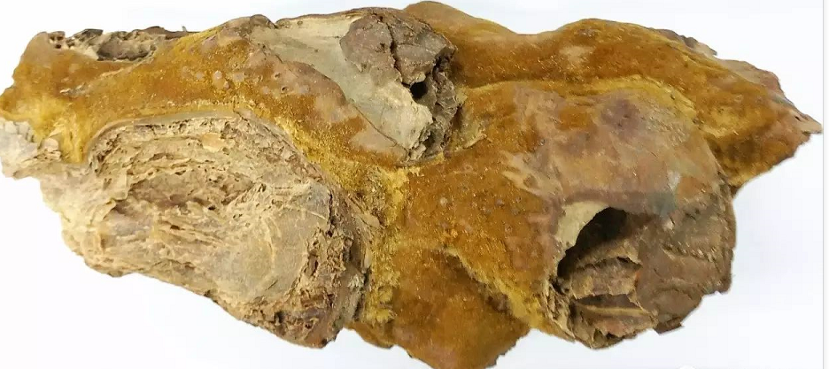 【性状】 本品呈不规则的长块状,,长10~30cm,,直径2~10cm。。表面深棕色,,残留金黄色绒毛;上面有数个红棕色的木质叶柄,,,,下面残存黑色细根。。。质坚硬,,,,不易折断。。。。无臭,,,,味淡、、、、微涩。。。生狗脊片呈不规则长条形或圆形,,长5~20cm,,直径2~10cm,,,,厚1.5~5mm;切面浅棕色,,较平滑,,近边缘1~4mm处有1条棕黄色隆起的木质部环纹或条纹,,,,边缘不整齐,,偶有金黄色绒毛残留;质脆,,,易折断,,有粉性。。熟狗脊片呈黑棕色,,质坚硬。。。