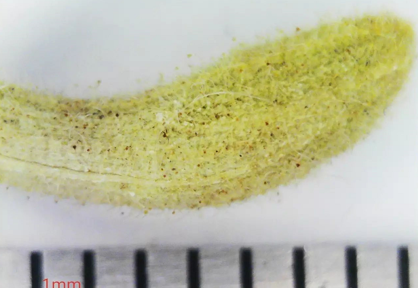 【鉴别】(1)本品粉末浅黄棕色或黄绿色。。。腺毛较多,,,头部倒圆锥形、、、、类圆形或略扁圆形,,,4~33细胞,,,排成2~4层,,直径30~64~108μm,,,柄部1~5细胞,,,长可达700μm。。。非腺毛有两种:一种为厚壁非腺毛,,,单细胞,,,,长可达900μm,,,,表面有微细疣状或泡状突起,,,有的具螺纹;另一种为薄壁非腺毛,,,单细胞,,,甚长,,,,弯曲或皱缩,,,,表面有微细疣状突起。。草酸钙簇晶直径6~45μm。。。花粉粒类圆形或三角形,,表面具细密短刺及细颗粒状雕纹,,具3孔沟。。