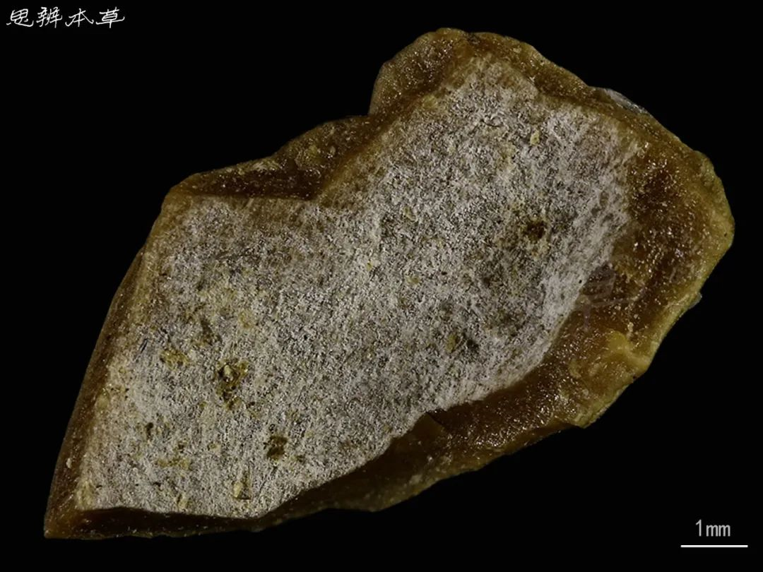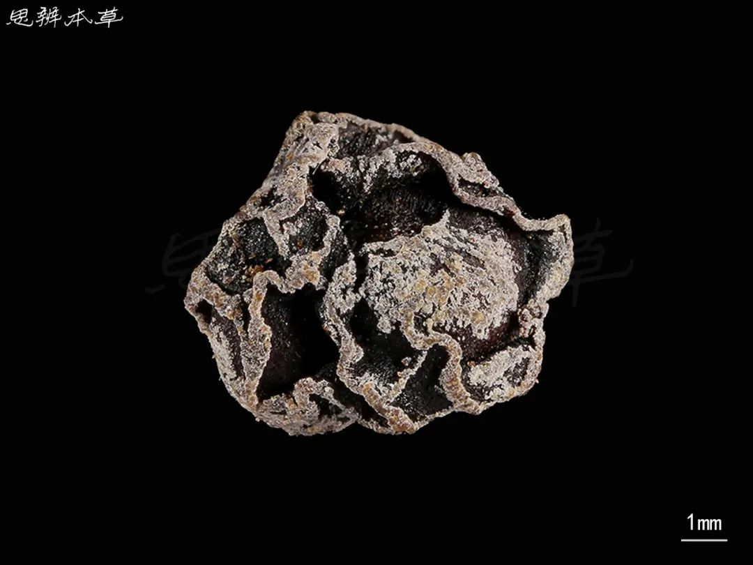 五倍子破开后内有黑褐色死蚜虫及灰色粉状排泄物。。。。内壁上附有白色粉霜状或结晶状的蜡样物。。。。五倍子内表面霜状物实为排泻物、、、、粉霜及结晶的混合物,,,,受潮易霉变,,,,不利于贮藏。。。。